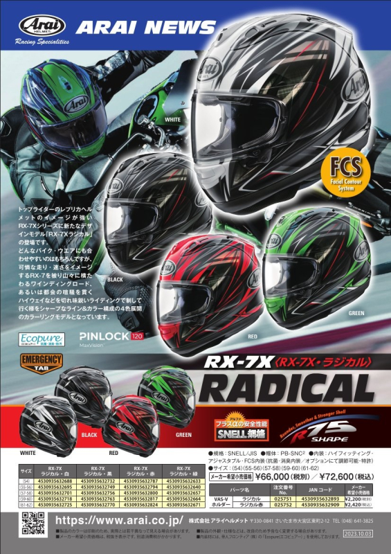 | シールド | VAS-V MVシールド〈クリアー〉標準装備 (※曇り止めピンロックシートは別売) | |