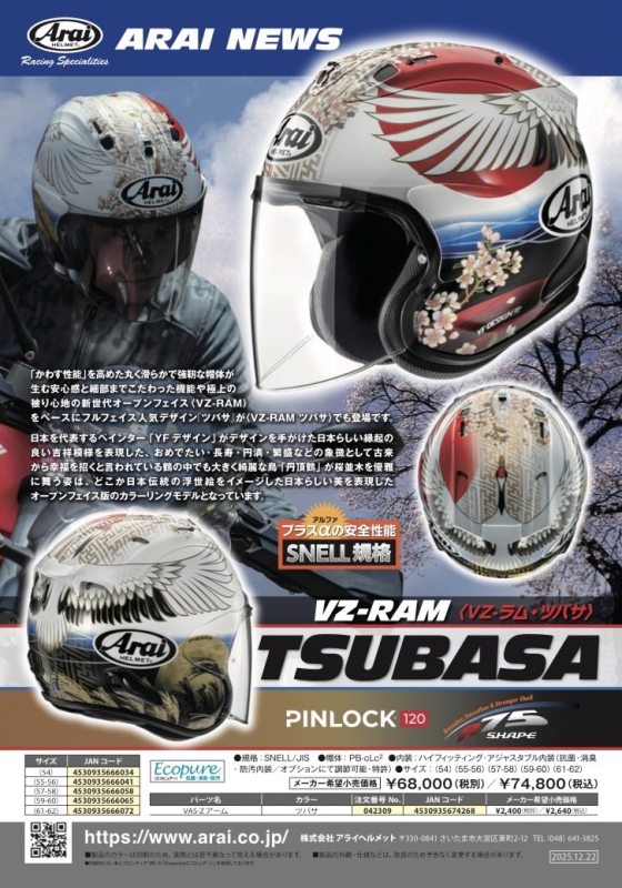 | シールド | VAS-Z ブローシールド〈ライトスモーク〉標準装備 (※曇り止めシートは別売) | |